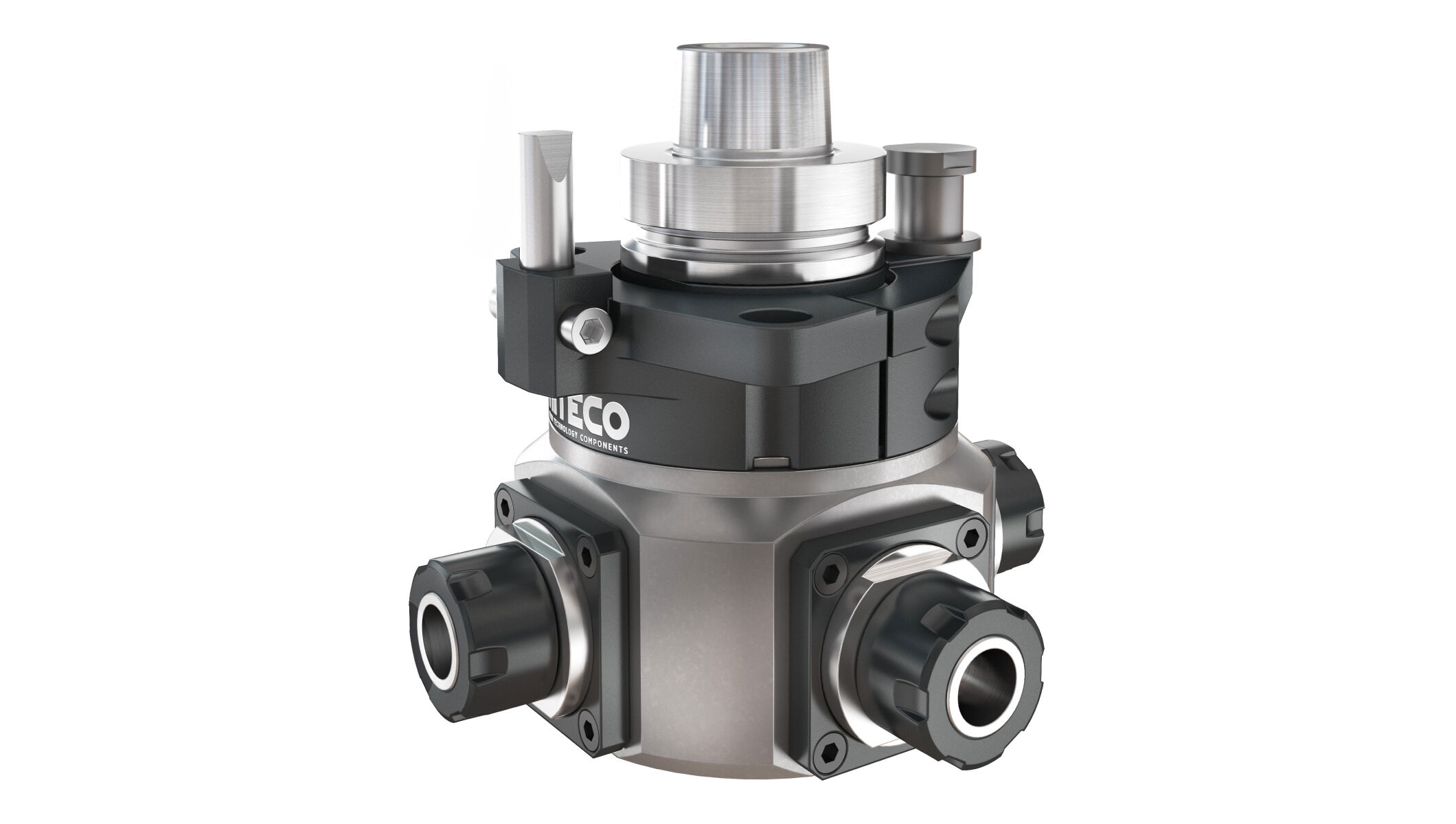 產(chǎn)品描述:Hiteco 的四頭輸出角度頭非常適合使用 4 種不同尺寸的刀具進(jìn)行鉆孔和銑削。