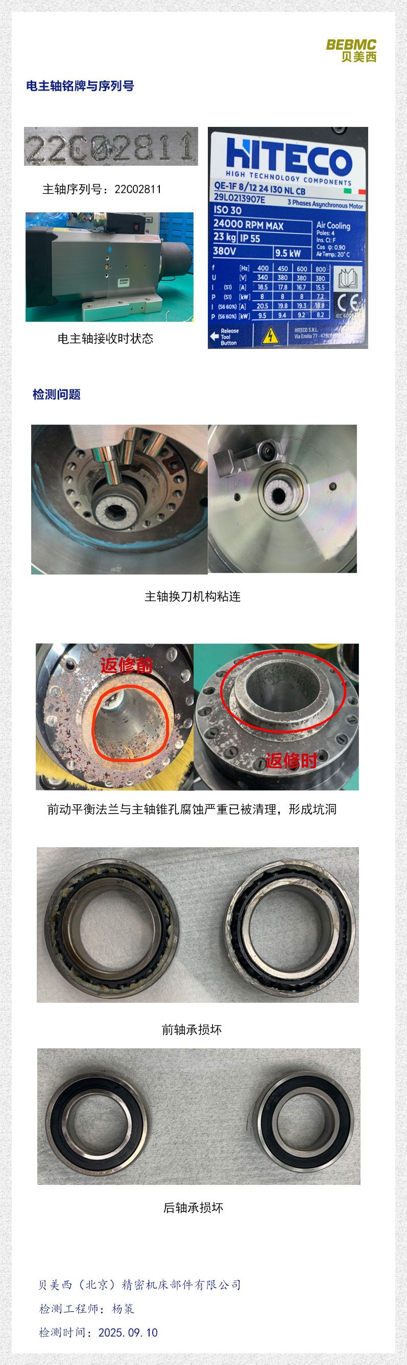 非產(chǎn)品品質(zhì)問(wèn)題,主軸前期反饋軸頭部分銹跡嚴(yán)重,客戶自行經(jīng)過(guò)打磨后以存在坑洞,主軸在遠(yuǎn)程調(diào)試過(guò)程中存在運(yùn)行中換刀動(dòng)作,導(dǎo)致?lián)Q刀機(jī)構(gòu)粘連,并且損壞軸承。